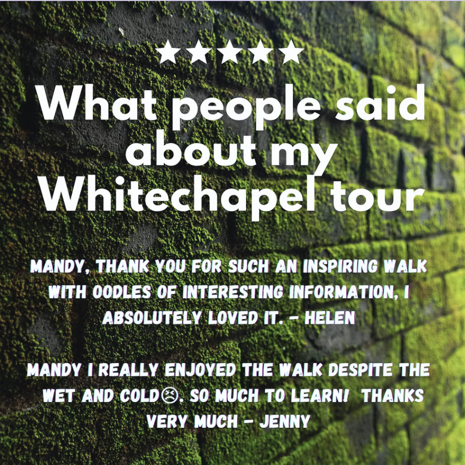 Sunday 10th May I shall be returning to my most popular place on the schedule, namely, Whitechapel. See the East End through the eyes of the women who worked, lived and died there. A tour which takes in Stepney Green, Brick lane and Spitalfields.